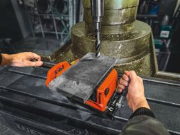 Leistungsstarker Permanentmagnet mit 12 500 N Magnethaltekraft bildet die Basis des FEIN VersaMAG L-Systems.