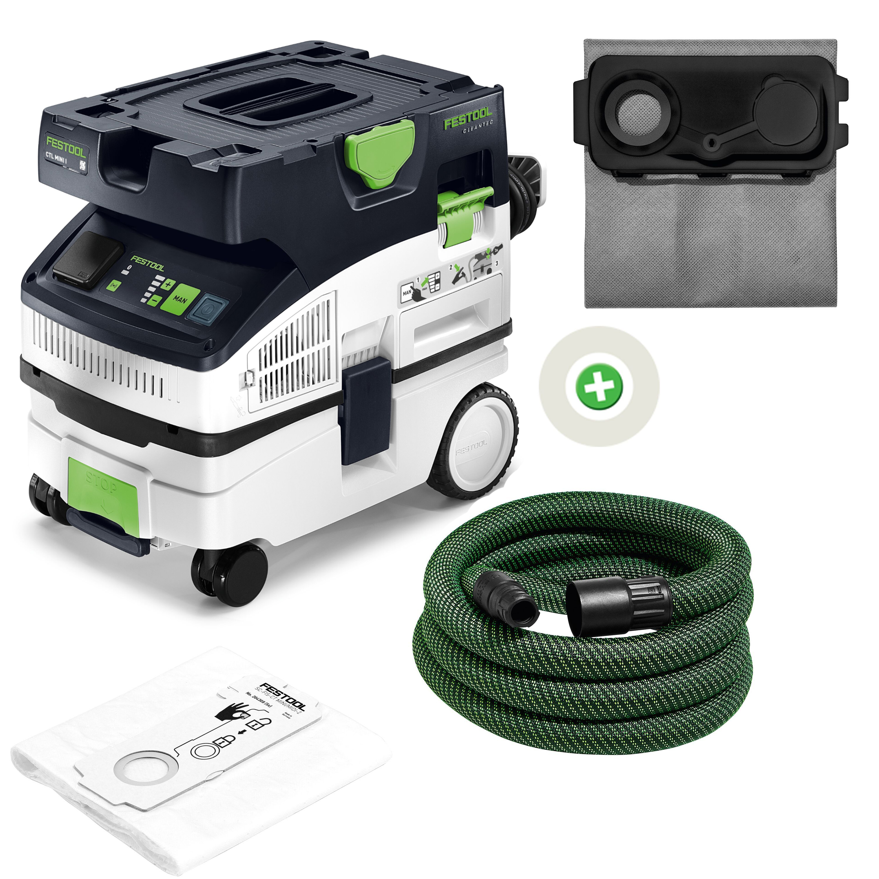 Saugschlauch glatt Ø 27/32 x 3,5 m-AS/CT, Bluetooth® Funktionalität für Sauger Ferneinschaltung bei Akku Werkzeugen, SELFCLEAN Filtersack SC-FIS-CT MINI/MIDI-2, Schlauchdepot, Kabelaufwicklung, SYS-Dock mit T-LOC Funktion, im Karton