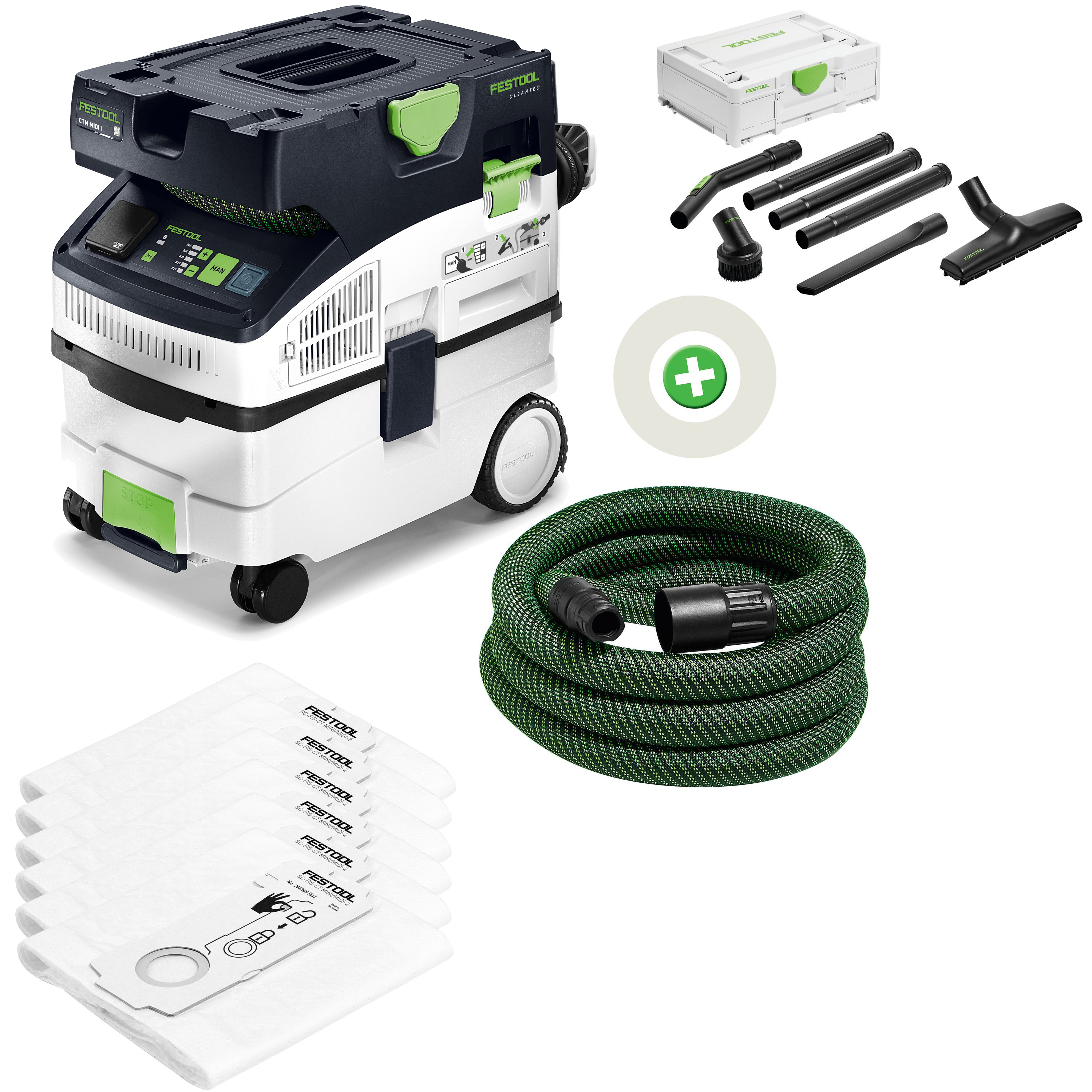 High Performance Hauptfilter, Saugschlauch glatt Ø 27/32 x 3,5 m-AS/CT, SELFCLEAN Filtersack SC-FIS-CT, Schlauchdepot, Kabelaufwicklung, Absaugmuffe mit Bypass, SYS-Dock mit T-LOC Funktion, im Karton