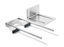 - Einfach montiert: Der Anschlag für Stirnseitenbohrungen wird mithilfe der zwei Stangen vom Parallelanschlag montiert