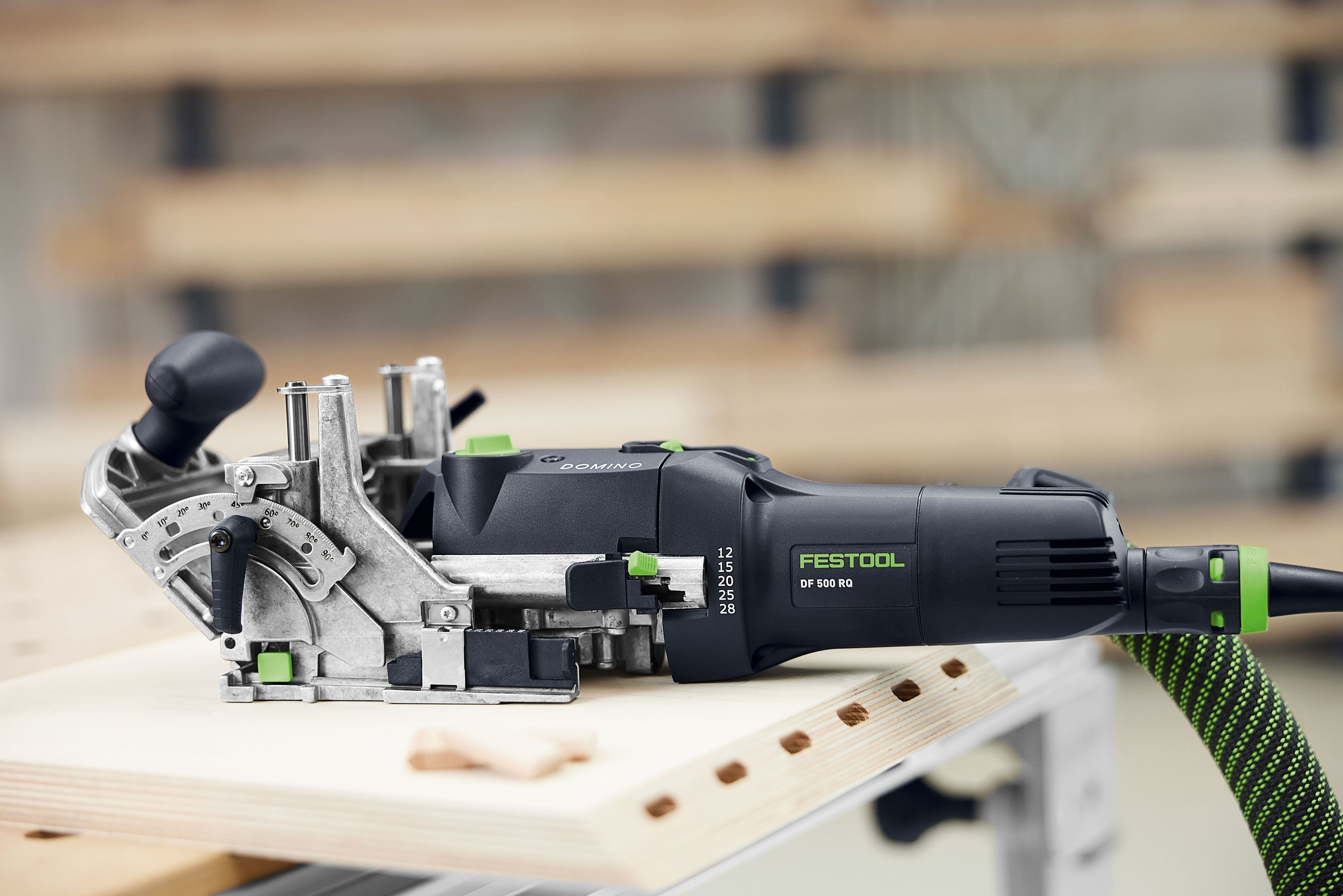 - Tiefenanschlag für Frästiefe: 12, 15, 20, 25, 28 mm