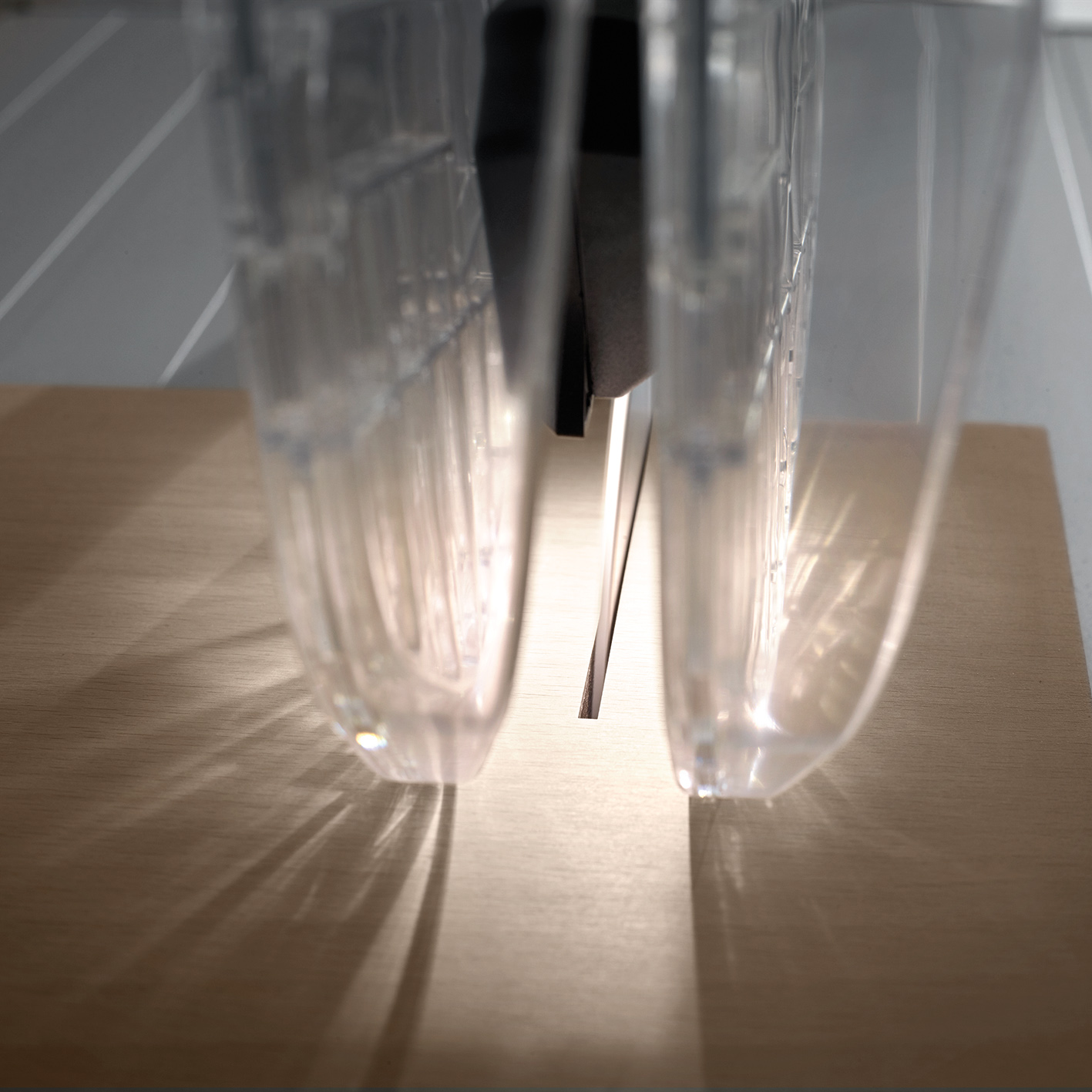 - Die Wiege der ERIKA wird am Front- und Rückteil geführt: ein einzigartiges Prinzip, das besonders bei Schrägschnitten entscheidend zur Schnittpräzision beiträgt.