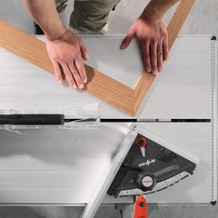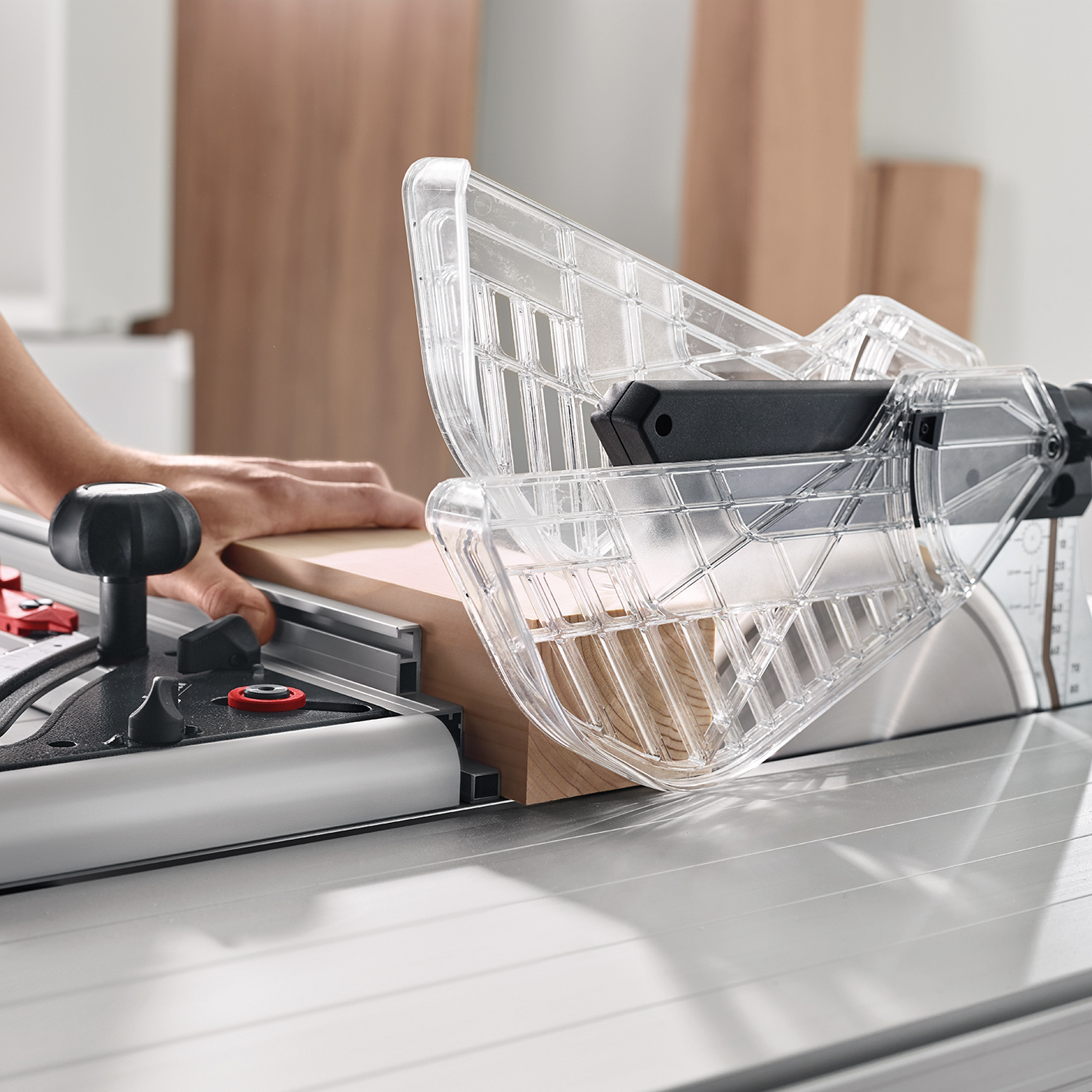 - Das sensorgesteuerte Arbeitslicht sorgt für beste Sicht auf den Schnitt. Die teilweise transparente Schutzhaube deckt das Sägeblatt komplett ab und sorgt damit für mehr Sicherheit.