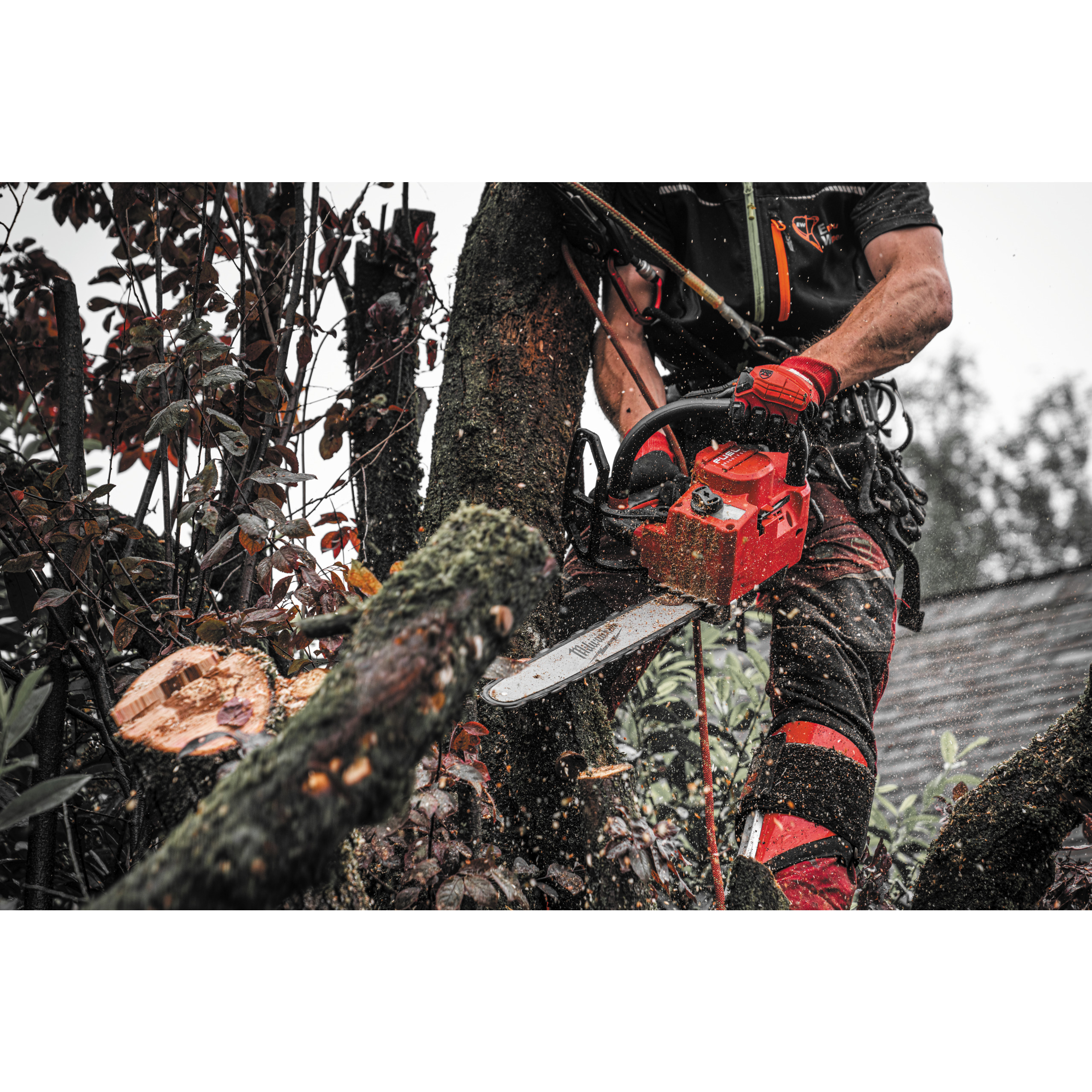 Hervorragende Schnittgeschwindigkeit in Hartholz im Vergleich zu Benzin- oder kabelgebundenen Einhand-Kettensägen;Hohes Drehmoment für schnelle Schnitte in anspruchsvollen Materialien und konstante Geschwindigkeit bei hoher Belastung, ohne zu blockieren;FUEL™-Technologie für Vollgas in weniger als 1 Sekunde;Bis zu 150 Schnitte in 10 x 10 cm Zedernholz mit einem M18™ HIGH OUTPUT™ 8.0-Ah-Akku;Durch kleine kompakte Bauweise und optimierte Balance perfekt geeignet für Anwendungen in der Baumpflege;Feinfühliger Geschwindigkeitsregler ermöglicht dem Anwender die volle Kontrolle über die Leistungsabgabe;Werkzeugsicherungsgurt für ein schnelles An- und Ablegen;Ergonomisch abgewinkelter Bügelgriff für bequeme Handhabung in verschiedenen Positionen;Integrierte Aufbewahrung für Schraubenschlüssel und leicht zugängliche Kettenspanner;Metallischer Krallenanschlag für eine verbesserte Hebelwirkung beim Schneideprozess;Einfache Kettenschmierung: verlustfreier Behälter, einfach zu befüllen und einfache Füllstandskontrolle;Wird geliefert mit 76 ml Öl, Sägekette und Schwertschutz;Das HIGH OUTPUT™-System hebt die M18 FUEL™-Technologien auf ein neues Niveau und bietet erweiterte Leistung und längere Laufzeit. Diese Werkzeuge wurden entwickelt, um die Zusammenarbeit mit HIGH OUTPUT™-Akkus zu maximieren;Kompatibel mit allen MILWAUKEE® M18™ Akkus