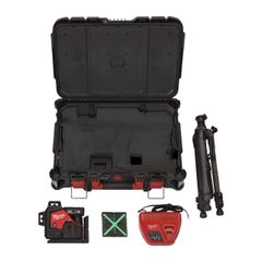 1 x M12 B4 Akku, C12 C Ladegerät, PACKOUT™ Koffer, Laserzieltafel, 1.2 Meter Stativ, Halterung