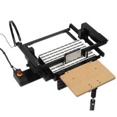- BenchPilot wird an der Workstation oder direkt auf deiner Arbeitsfläche montiert und bildet ein portalähnliches System. So lassen sich flächige aber auch stirnseitige Bearbeitungen wie das Fräsen von Verbindungen, Intarsien, filigranen Gravuren oder Profilen umsetzen. Ideal für Serienfertigung oder langwierige Arbeiten. Das Beste daran: Es ist keine komplizierte Software, G-Code oder eine andere CNC-Programmierung erforderlich.